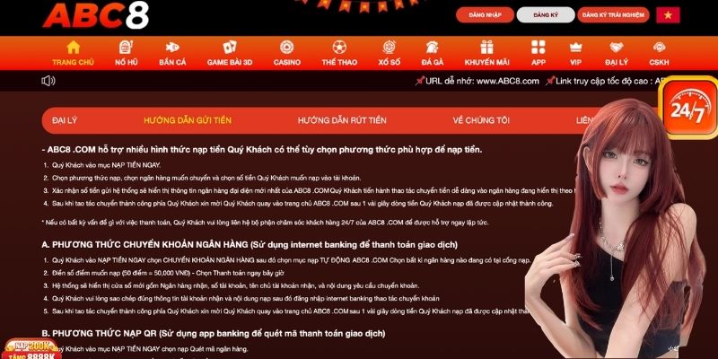 Nạp tiền ABC8 cực mượt qua tài khoản ngân hàng